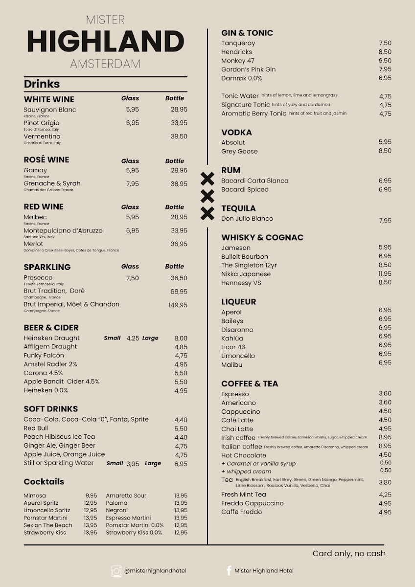 Welcome to Mister Highland Café & Terrace Amsterdam, a delightful escape nestled on Rokin Street, just moments from Dam Square. This café-lunch restaurant is your go-to spot for a pleasant dining experience, surrounded by the vibrant pulse of the city.